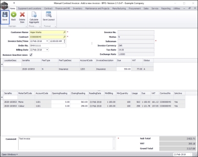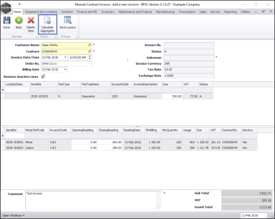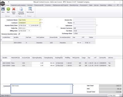 When you have navigated back to the Manual Contract Invoice: Add a new invoice screen, you will note that;