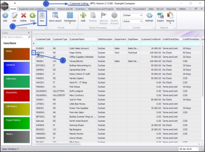 - Click on the row selector in front of the customer you wish to view.