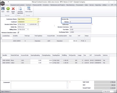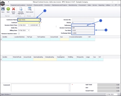 - Invoice No: When you save the details in this screen, the system will calculate the invoice number based on the selected contract configuration details set up.