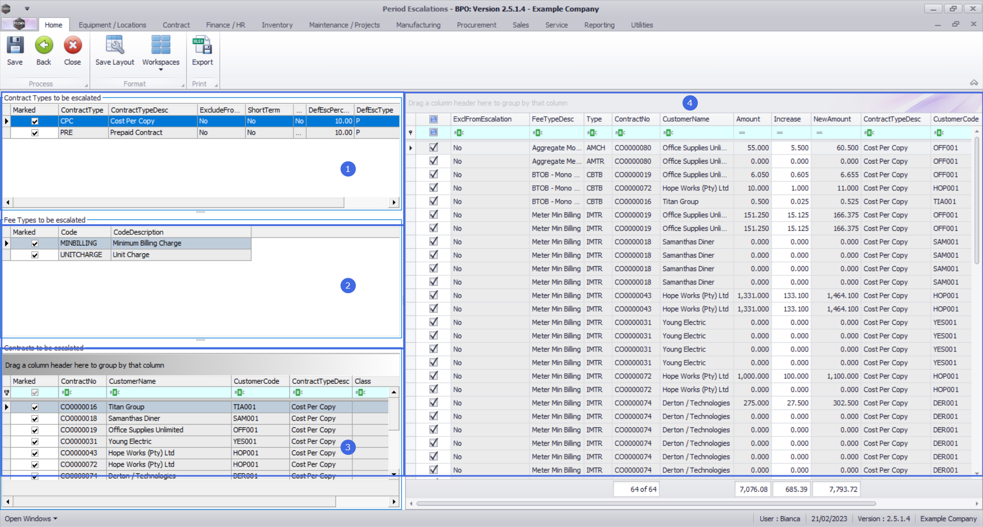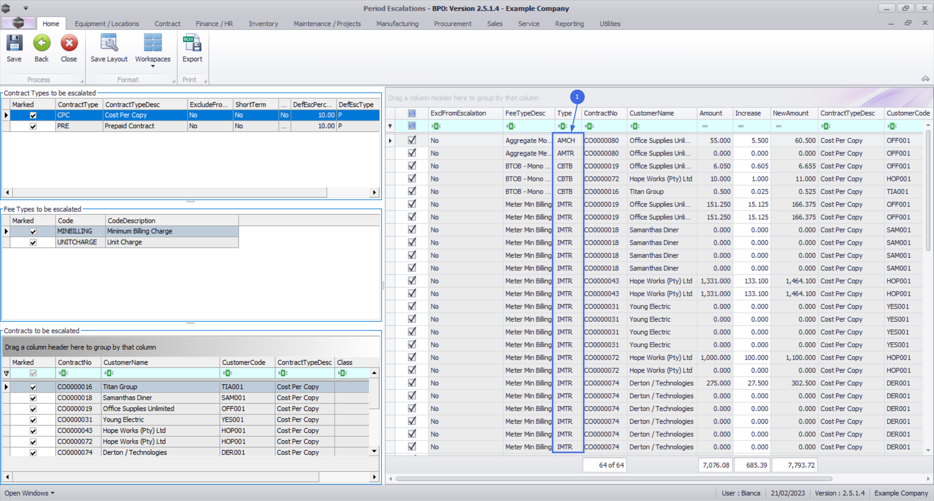 - The No Fee Items column will show you the number of contract item fees that are to be escalated in the relevant billing period.