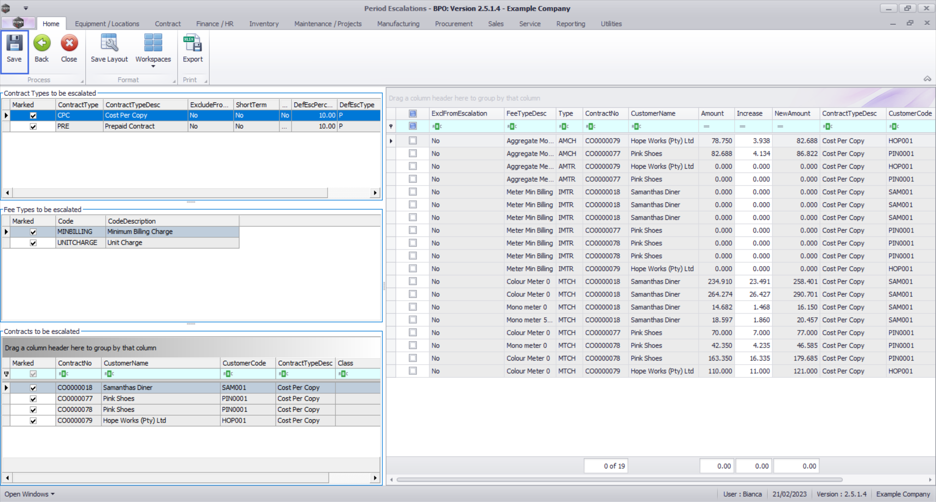 Ribbon Select Contract > Period Escalations
