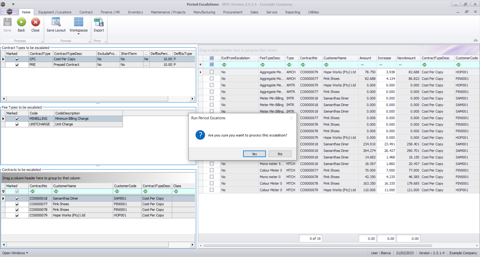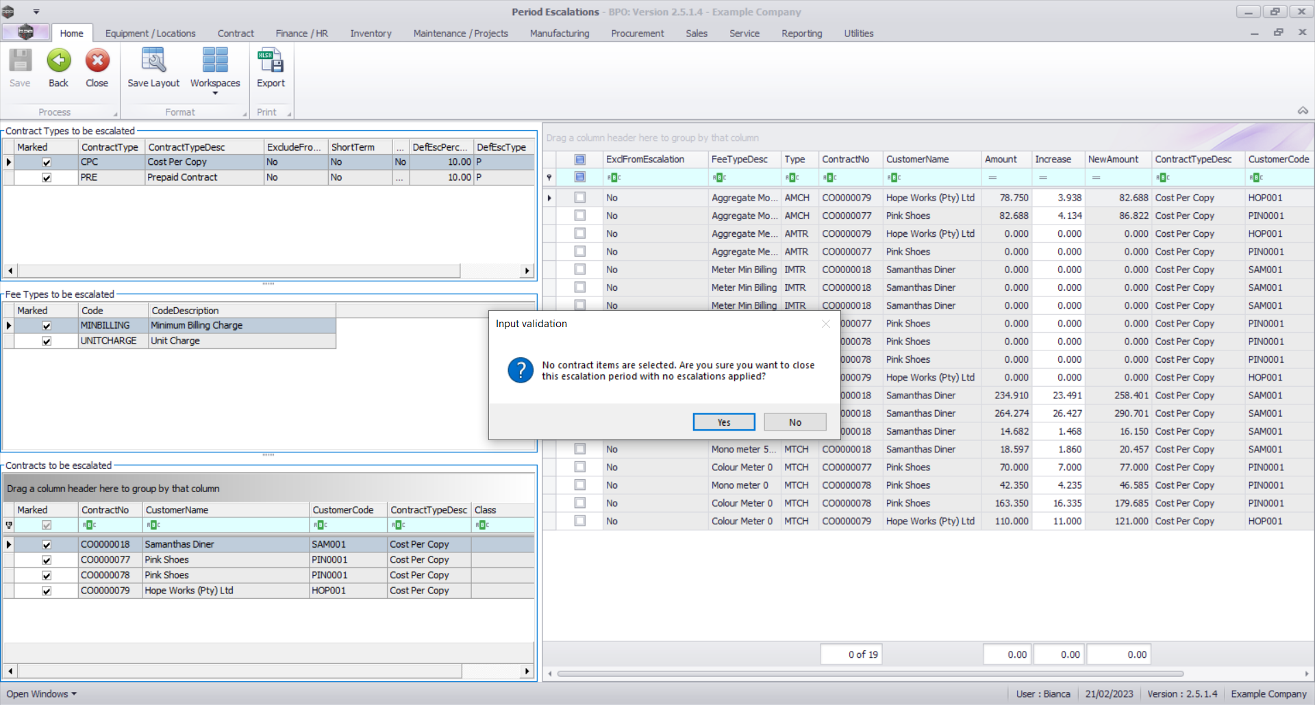 - No contract items are selected. Are you sure you want to close this escalation period with no escalations applied?