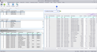 The Adhoc Escalations screen will be displayed, listing all Active contracts. This screen is divided into 4 frames: