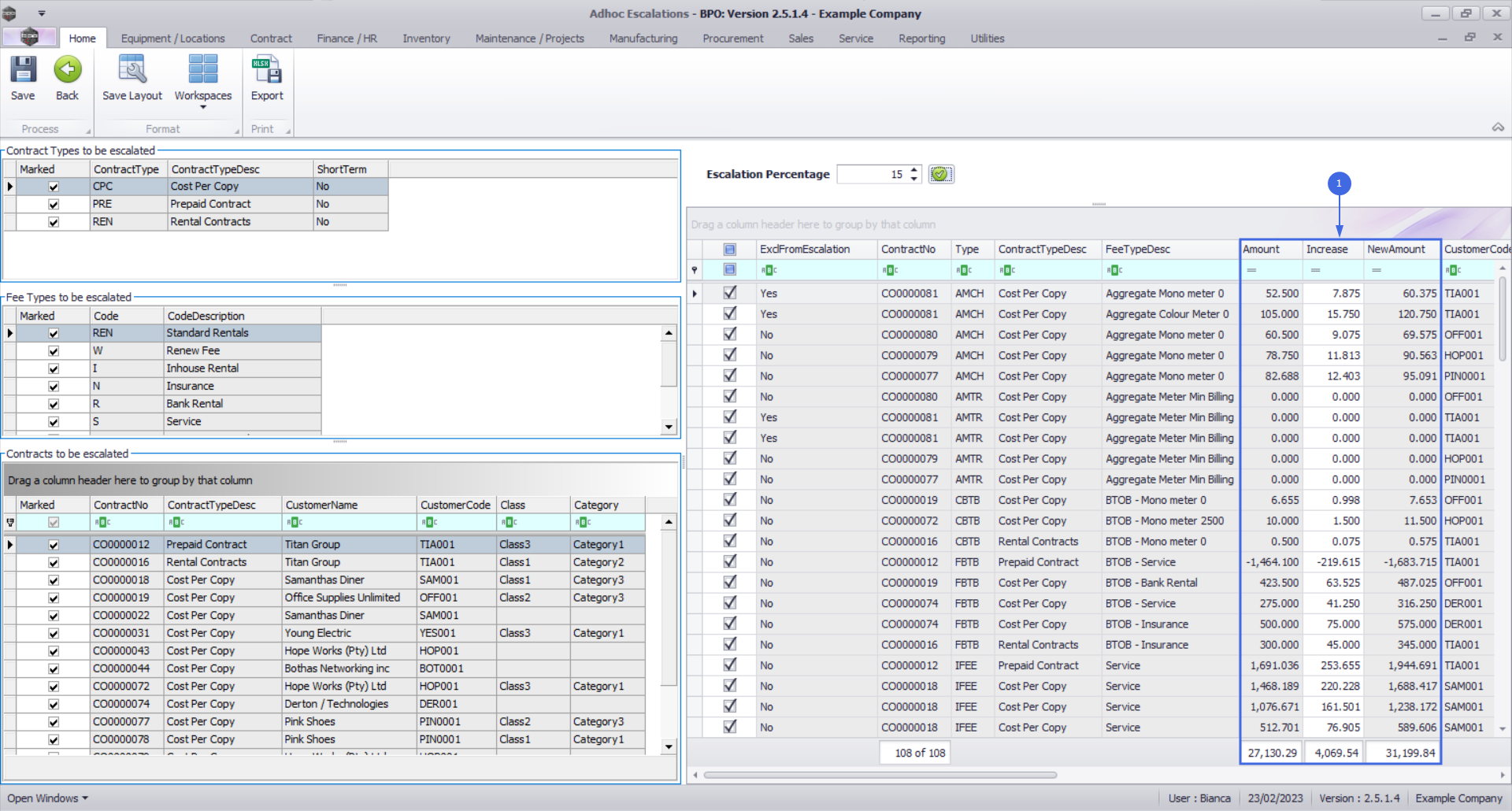 - This means that all the contract types and fees will be affected by any adhoc escalation changes that are made in this screen.
