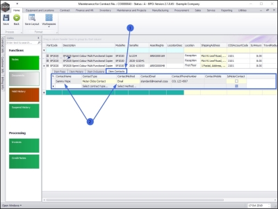 - Here you can view the Contract Item Meters Contact and the Contact Method.