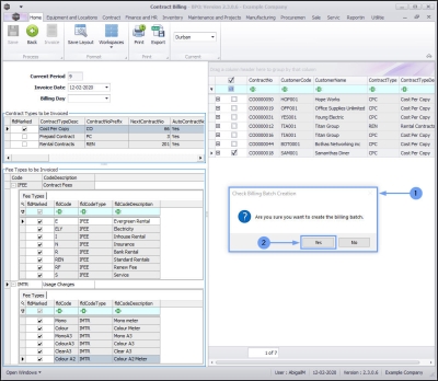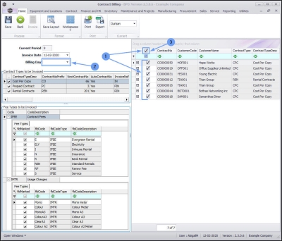 - Note: This will only generate billing for contracts which have Rental or Service charges set up.