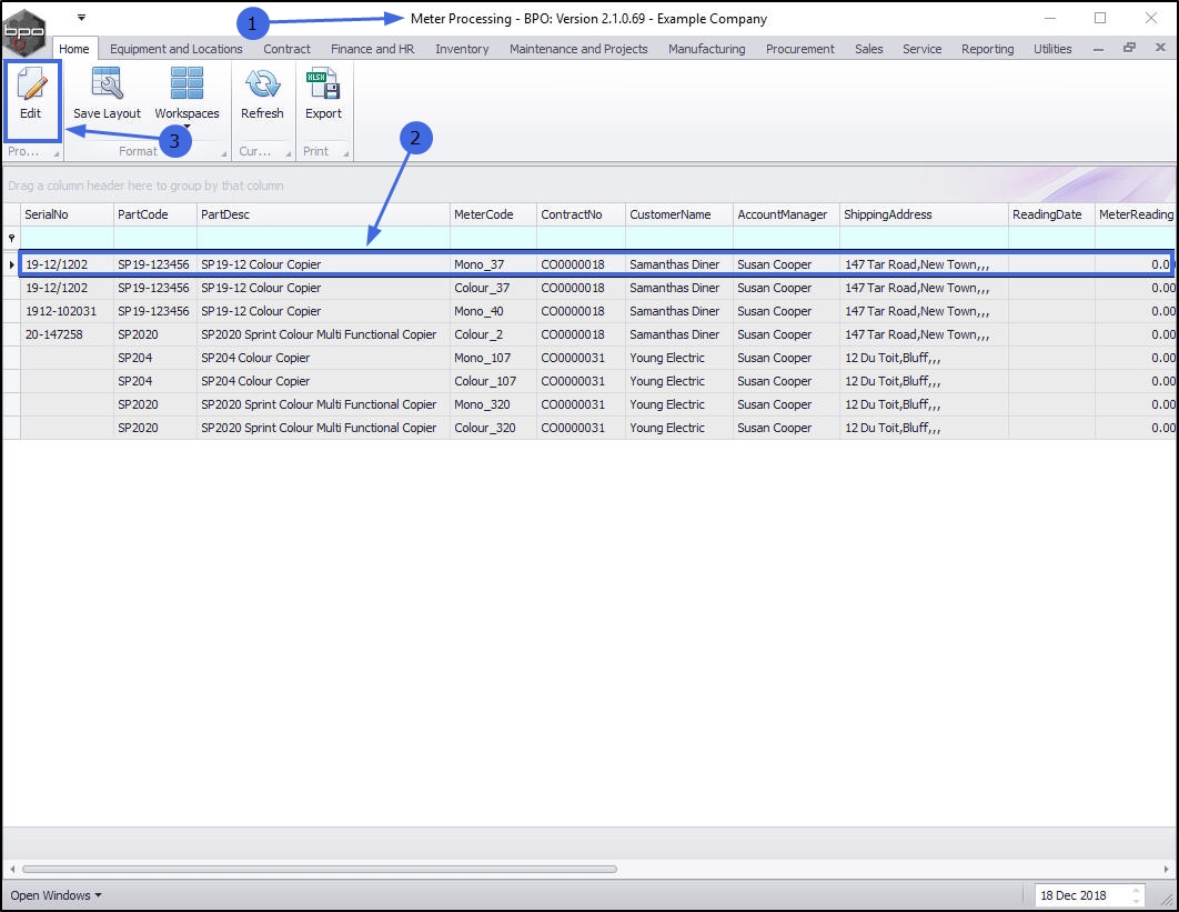 - Select the row of the item that you wish to update the meter readings of.