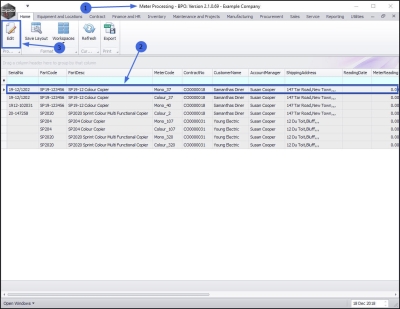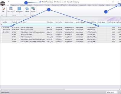 All meters for items on contract with uncaptured meter readings will be listed in the Meter Processing screen. As a reading is captured, that meter row will be removed from the screen. This screen should be clear before you close the billing period.
