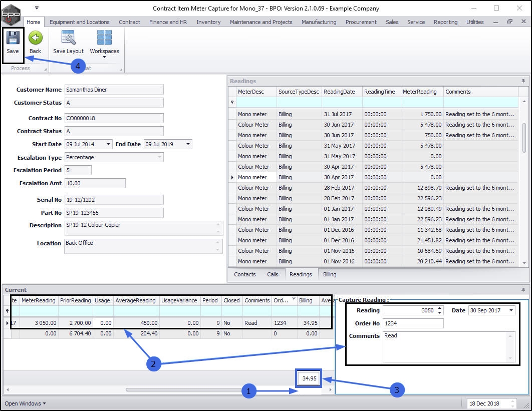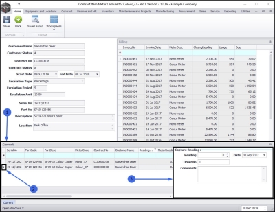 - The Contract Item meter Capture for [ ] screen will be displayed.