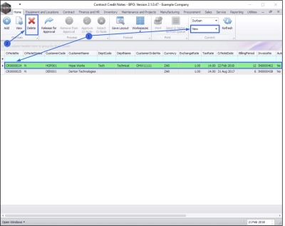 - You can now Delete the contract credit note (and raise a new one if required).