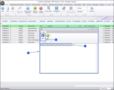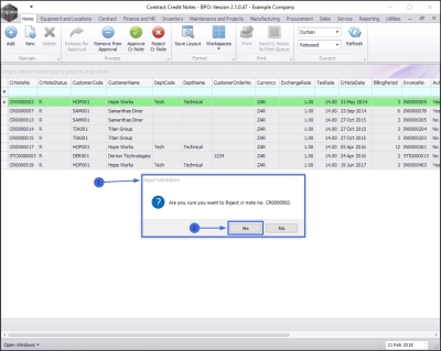 - Select the row of the contract credit note that you wish to reject.
