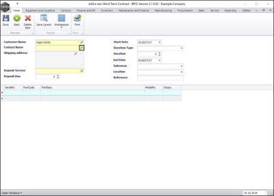 - If you wish to add additional items to this contract, click in the Serial No field in the new row of the Parts frame.