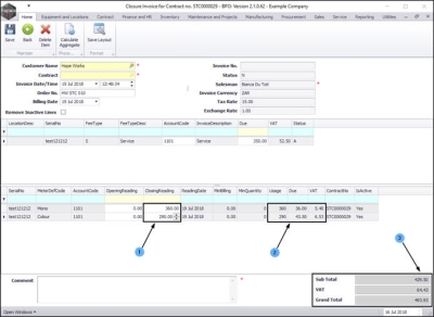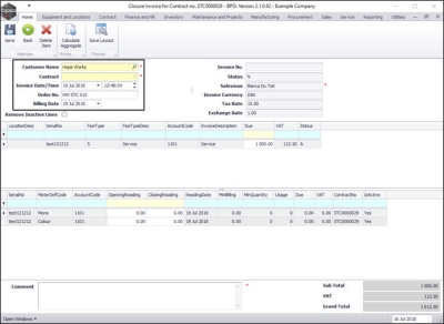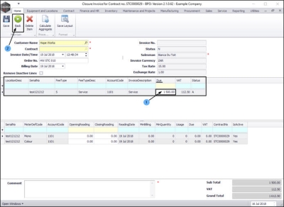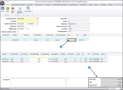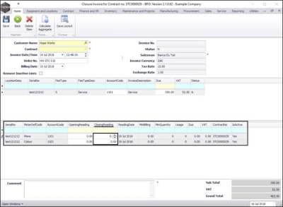 - Contract: This is un-editable in this screen but the contract number will pull across on the printed invoice.
