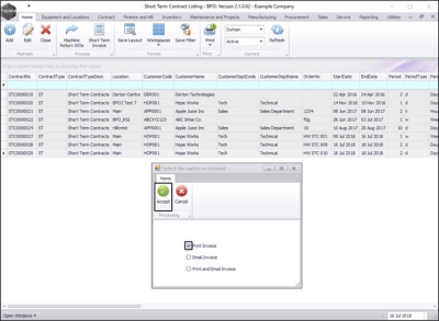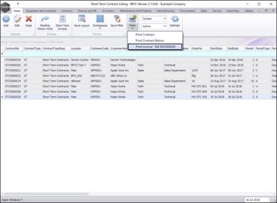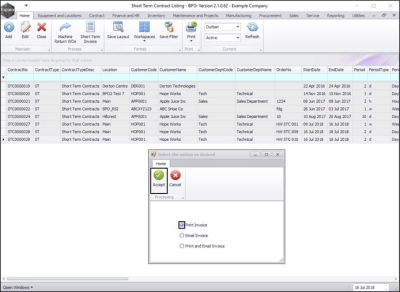A Short Term Contract Invoice is created at the end of the contract. (Multiple invoices can be raised, if for example, the contract is extended).