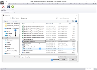 Note: If you receive an 'error' message when trying to email the document, ask your administrator to make sure that the correct shared folder location has been configured in BPO and that you have the relevant folder rights to access the shared folder on the server.