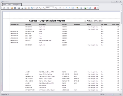 - From here you can View, Print, Export or Email the depreciation report.