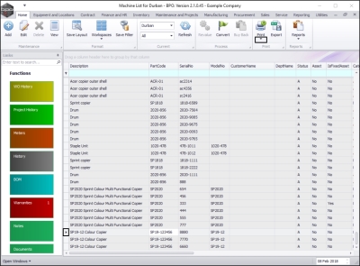 The screen will open with the default Site setting configured on the user and the Equipment Type filter set to 'All' (machines).