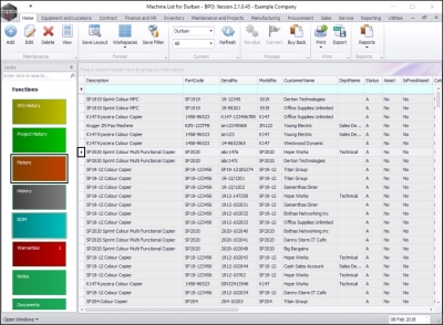 The Machine List for [] screen will be displayed.