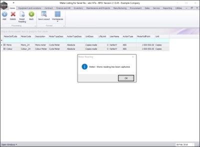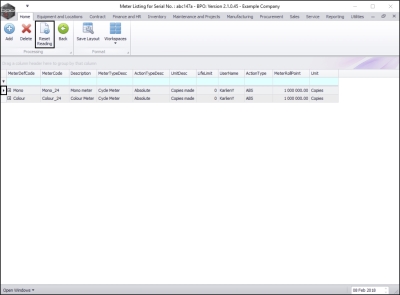 • Select the row of the serialised item where you wish to reset the meter reading.