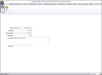 • Final Reading: This will auto populate with the same detail as the Reading text box.