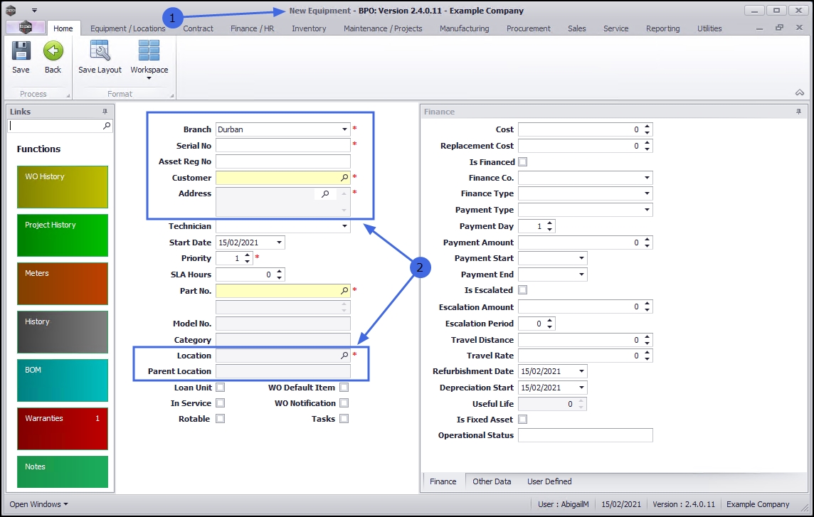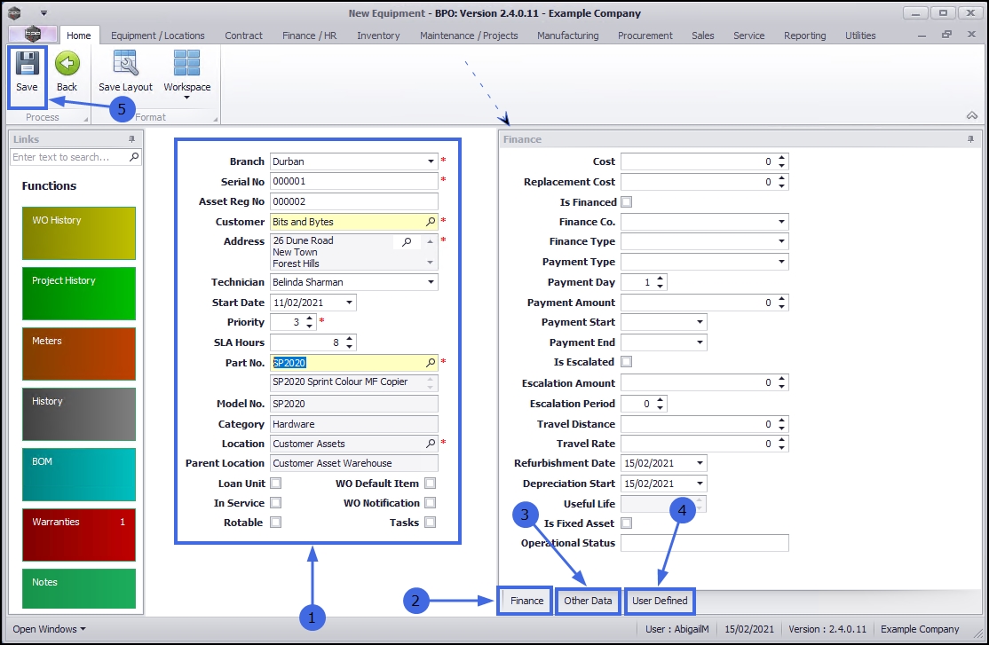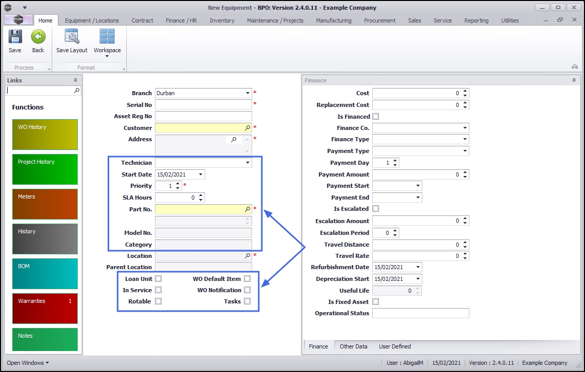 - Loan Unit: As this is a customer machine and not a loan unit, this check box will remain un-ticked.