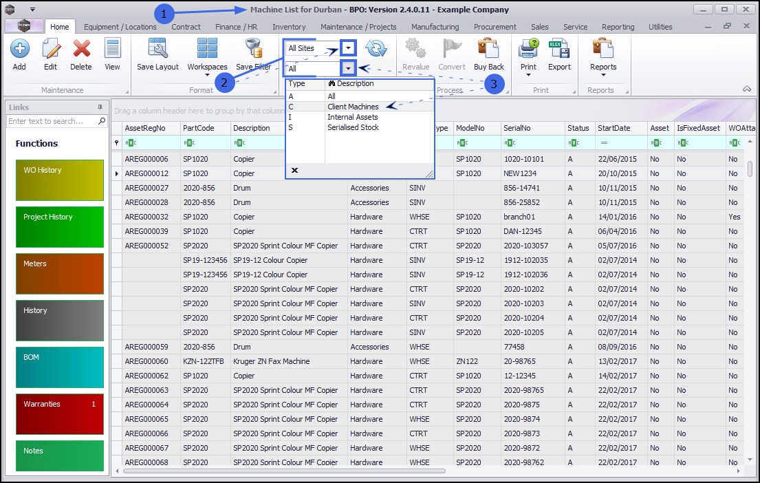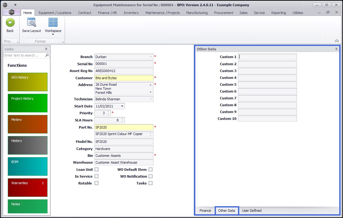 - Customer: This field will be populated with the name of the customer who owns this machine.