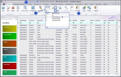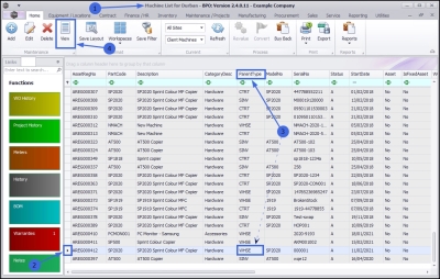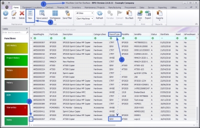 The View button in the Asset Listing screen (Machine List for [ ] screen) allows you to view more details with regards to a selected asset.