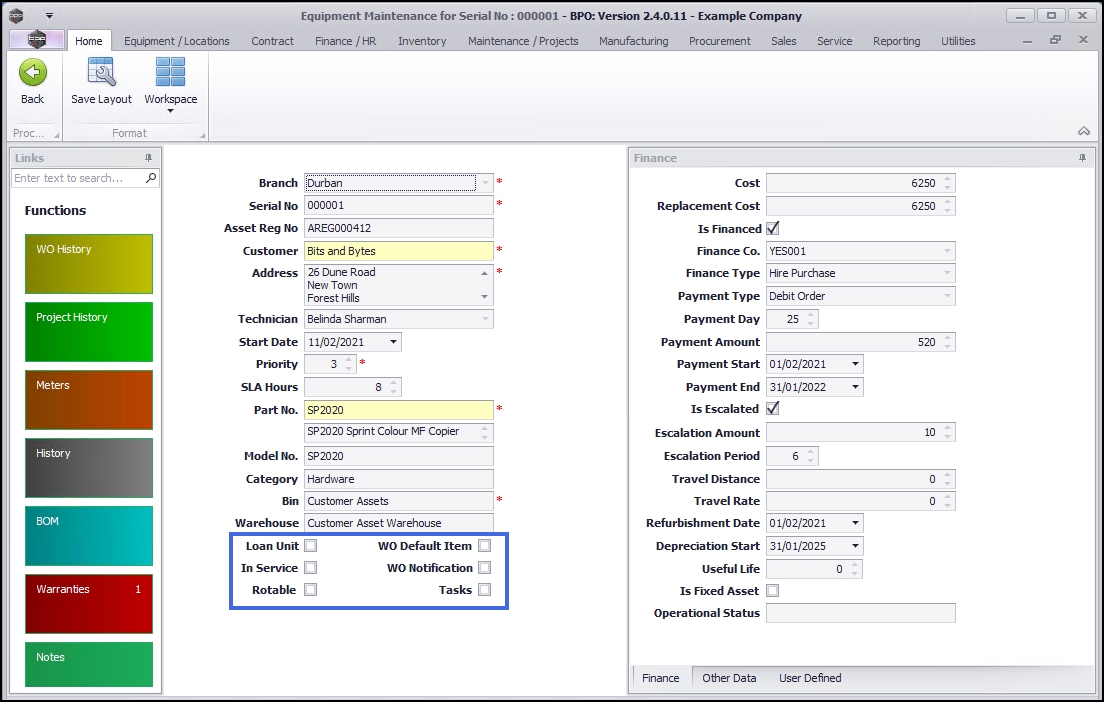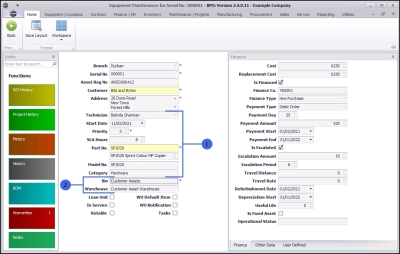 - Is Financed: This field shows whether a third party has provided funds for this item e.g. the item has been financed by a bank. Click on this check box if this item is financed by a third party (this would also apply to a client owned asset).
