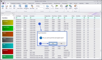 - Do you want to print the Asset Register report for []?