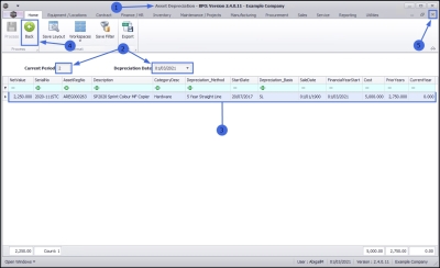 - Select the row of the asset where you wish to view the depreciation information. The selected row will highlight.