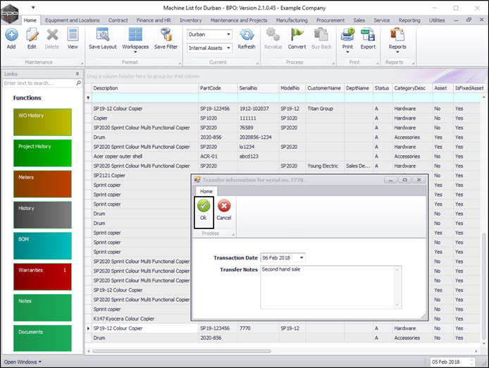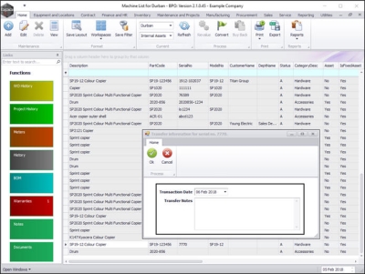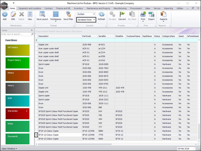 - You can now view the transferred item in the Machine list for [] screen where the status is set to Serialised Stock.