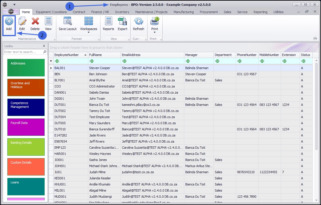 - Employee Number: This is the unique code given by the company to keep track of this employee. The standard convention is to use the first 3 letters of the employee's surname, followed by 3 digits. e.g. ROW001 for David Rowe. The digits will increase as employees with the same 3 letters in their surname are added to the company.