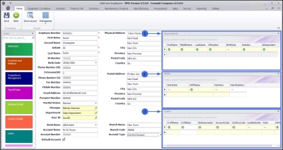 When you have added the employee's personal and banking details, move to the right of the screen to the additional information docking panels.