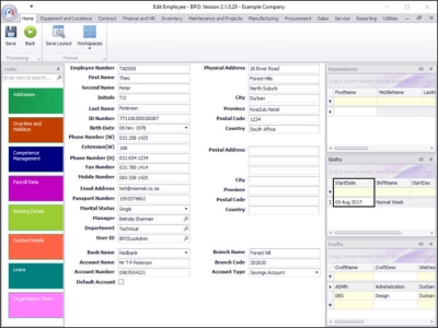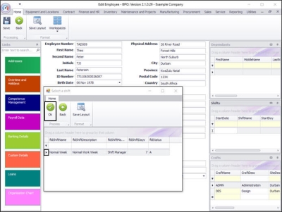 The Shifts docking panel lists all the shifts assigned to the selected employee.