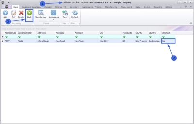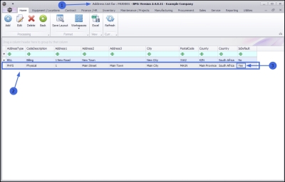 - Note that the final column IsDefault reads as 'Yes' as this address was selected as the Default Address in the previous step.