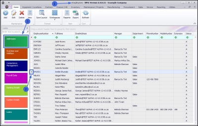 | Ribbon Access: Finance and HR > Employees |