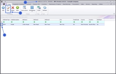 - Select the row of the employee for whom you wish to edit an Address.
