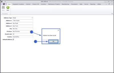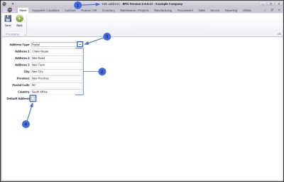 - All of the fields except Address Type and the Default Address check box, require the edited details to be typed directly into the text boxes.