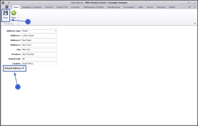 - In this example, this address is to be edited to become the primary or default address, therefore the Default Address check box is to be selected.