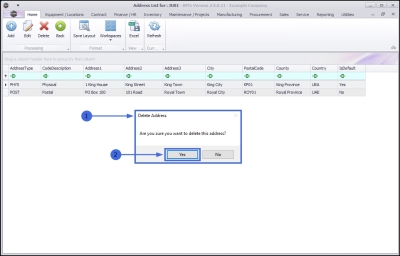 - A Delete Address message box will pop up asking;