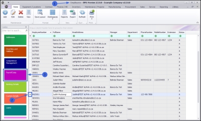 | Ribbon Access: Finance and HR > Employees |