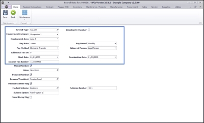 Payroll Data can be set up to include payroll, income tax, pension, medical aid and union details for example, that are not already set up on the system.