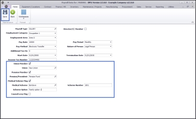 - Pension Member: Select this check box if the employee is linked to a pension scheme.