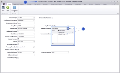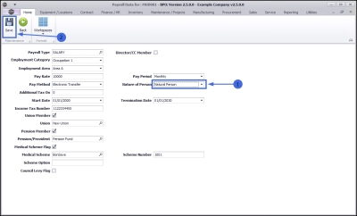 - Employment Area: Click on the drop-down arrow and select from the list the area of the company where this employee is based.