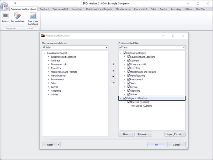 - The New Category, New Tab and New Group have (Custom) after their titles to let you know that they are your customized additions to the list.