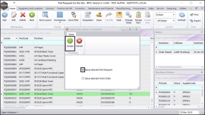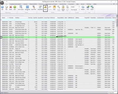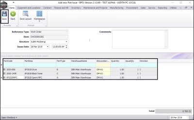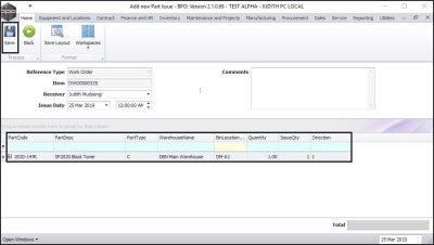 You will notice that all the parts requested against the Work order are listed in the data grid.