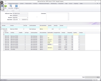 Note: If you are using the Stock Batch Tracking option, make sure you select the correct Batch Number for C-Class (non-serialised) items, when issuing stock. For more details, refer to Inventory: Stock Batches.