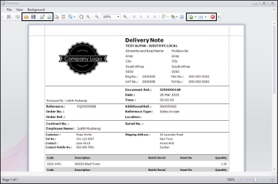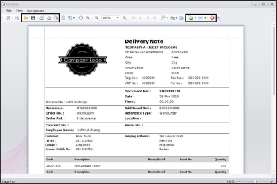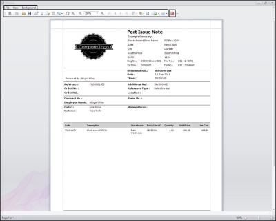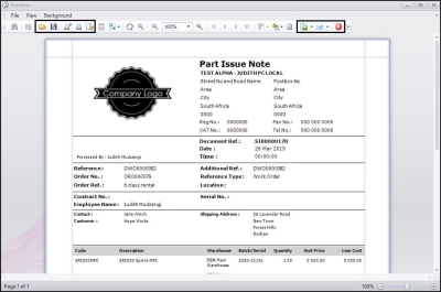 - The Report Preview screen for the Part Issue Note will be displayed.