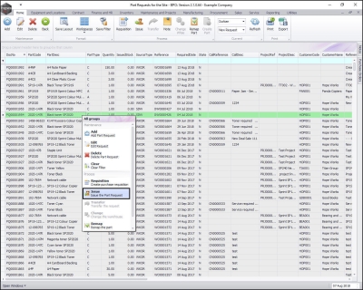 Move down the screen to the Parts data grid. You will see that the system has pulled across all the items linked to the part request, even though only the one item line was selected.