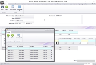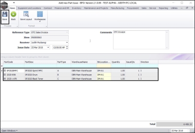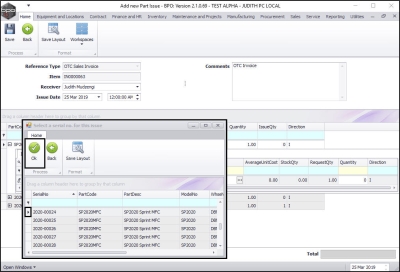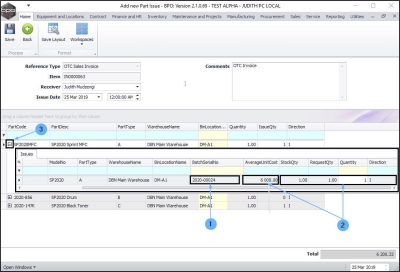- In this frame, you can now select to issue the part from a specific stock batch number if your company is using the Stock Batch Tracking option.